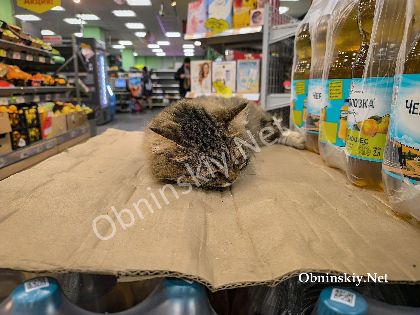 Вот такой милый котик живёт в магазине "Пятёрочка" в Обнинске